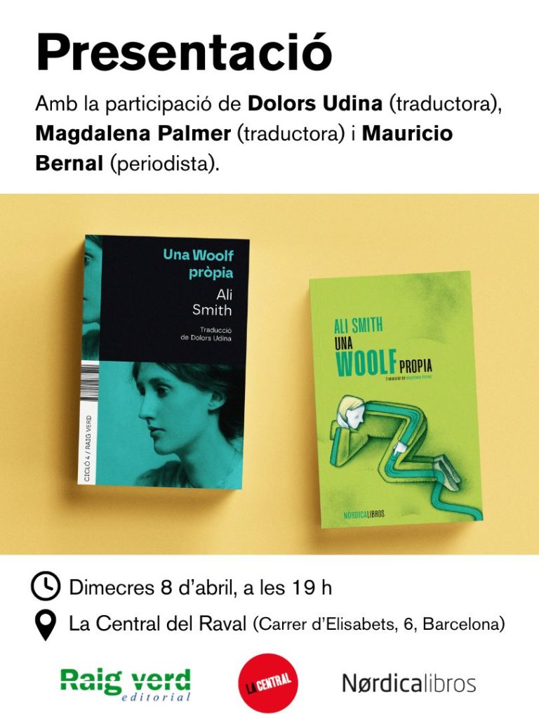 El proper dimecres, 8 d’abril, a les 19h, tindrà lloc a La Central del Raval (carrer Elisabets, 8) la presentació d’UNA WOOLF PRÒPIA, d’Ali Smith. L’acte comptarà amb la participació de Dolors Udina, traductora d’aquest llibre al català.